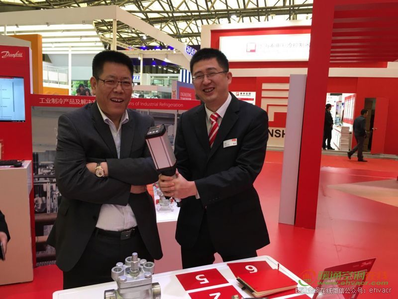 工业制冷部门销售总监闫立新先生与行业伙伴手握今年获创新产品殊荣的工业制冷控制导阀